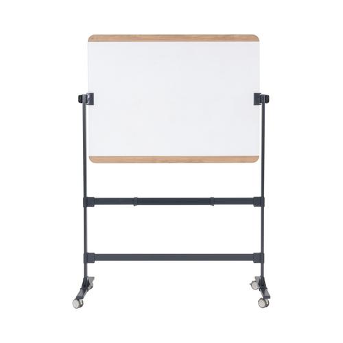 The Ace mobile board is a versatile and stylish solution for your presentation and brainstorming needs. It combines the practicality of a magnetic writing surface, framed within a sleek wood frame and anthracite structure, creating a sophisticated and functional addition to any workspace. The double-sided surface offers a smooth and responsive writing experience. Its high-quality construction ensures that your markers glide effortlessly across the surface, allowing you to capture your ideas, create visual presentations, or illustrate concepts with ease. The magnetic properties of the surface also enable you to attach important documents, notes, or visual aids using magnets, providing added flexibility and organization. The wood frame and anthracite structure add a touch of refinement to its overall design. The natural warmth and beauty of the wood frame complement the modernity of the lacquered steel surface, creating a harmonious blend of traditional and contemporary elements. The anthracite structure not only enhances the visual appeal but also provides stability and durability, ensuring that the easel remains steady and secure during your presentations or brainstorming sessions. One of the standout features of this mobile board is its mobility. Equipped with smooth-rolling casters, it can be easily manoeuvred from room to room, making it an ideal solution for dynamic environments where collaboration and flexibility are essential.